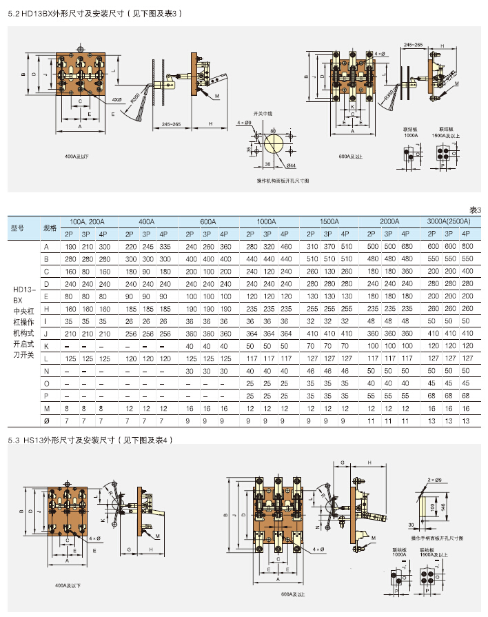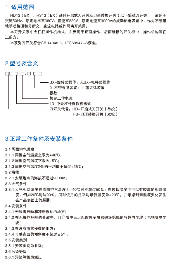 HD13(BX)、HS13(BX)系列开启式刀开关及刀型转换开关
