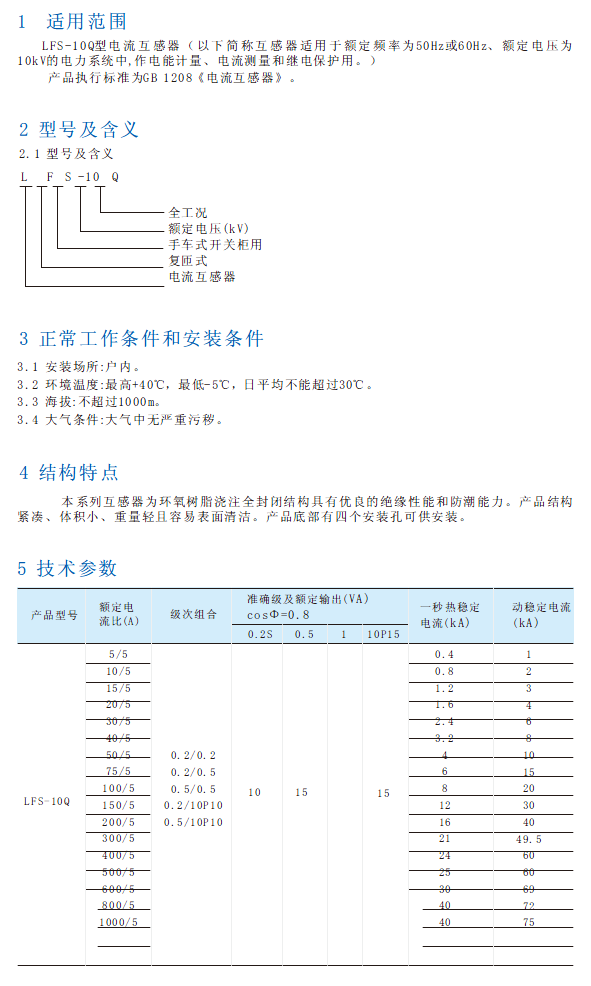LFS-10Q型电流互感器